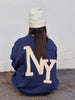 - This oversized pullover with vintage NY logo on the back feels like you pulled it right from your dad’s closet!