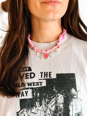Bandana Charm Necklace: Yellow/Pearl Heart