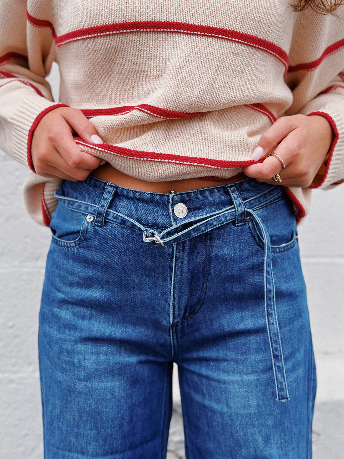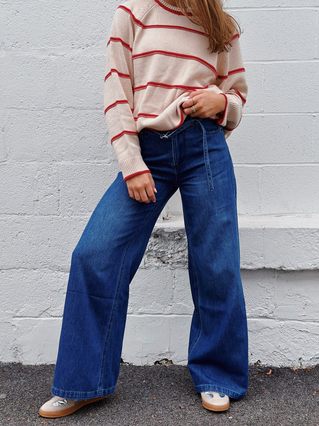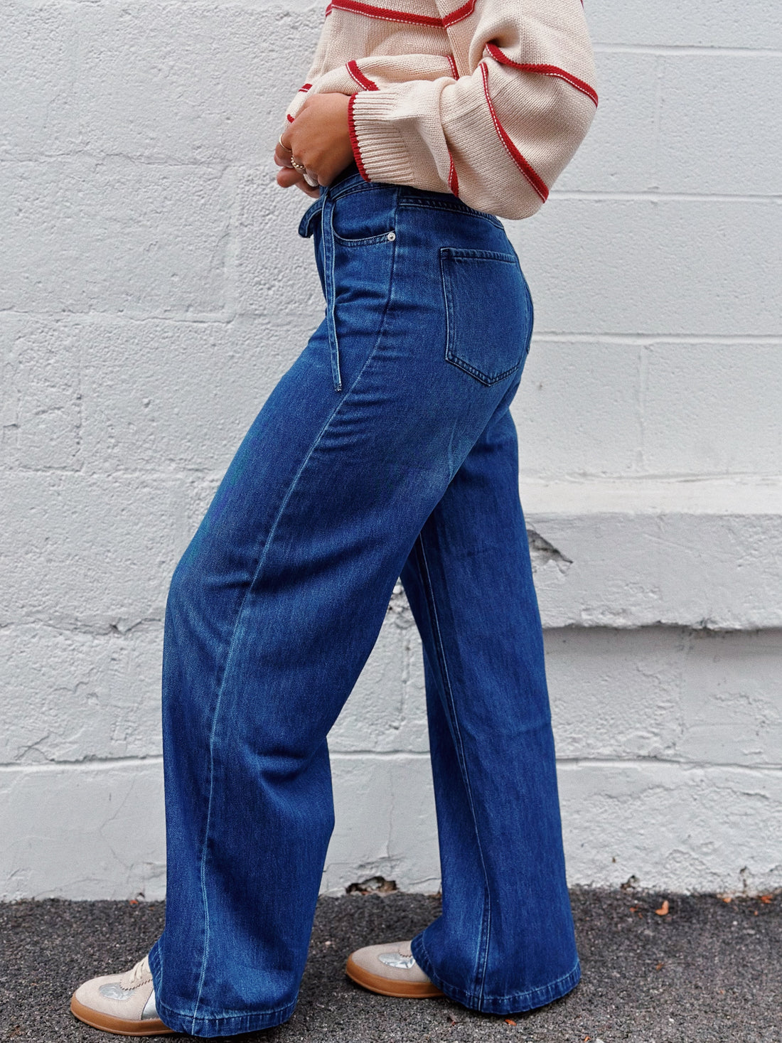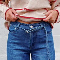 Effortlessly elevate your wardrobe with the SERENITY jeans. These jeans offer style and comfort, featuring a wide-leg design and self-belt. Embrace the on-trend look while effortlessly cinching your waist for a flattering silhouette. Crafted with denim for a lasting addition to your wardrobe.
