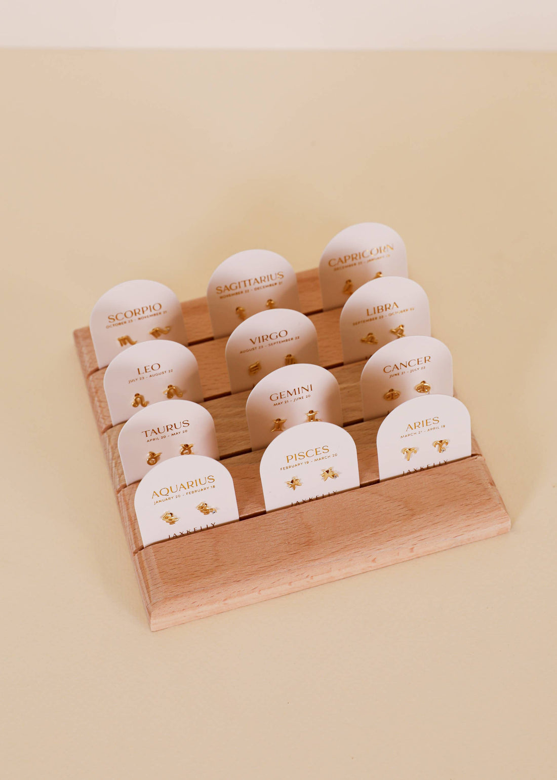 The Zodiac Charm Studs offer a cute way to flaunt your zodiac sign and unique style. Ideal for first, second, or third ear piercings.